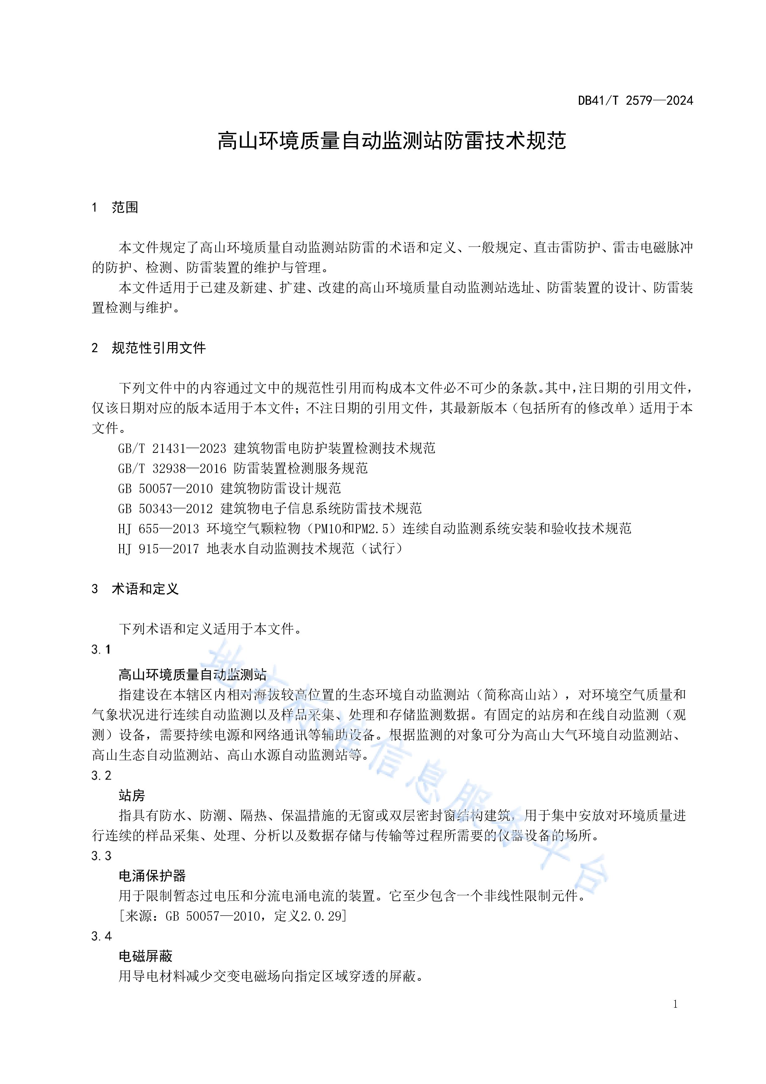 地方標準《高山環境質量自動監測站防雷技術規范》,主管部門為河南省市場監督管理局。